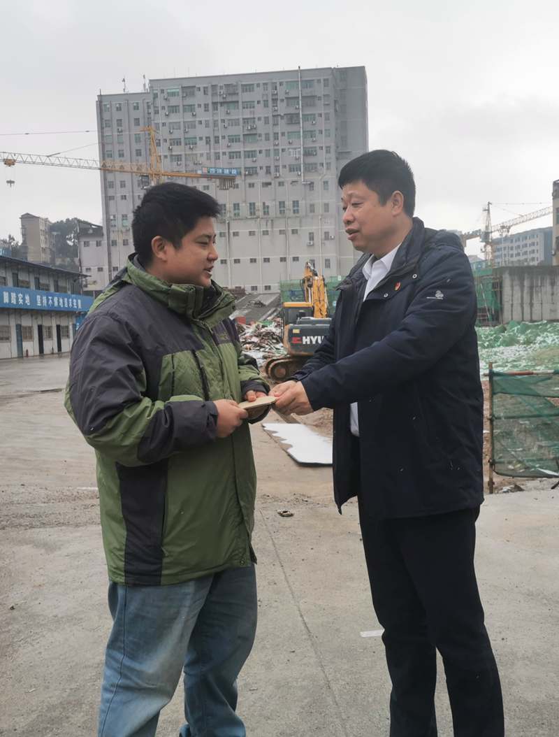 公司黨委副書記、總經(jīng)理江中同志慰問錦園路項目一線困難群眾,并向堅守在項目建設(shè)一線的工人們提前送上新春慰問,致以衷心的感謝和美好的祝愿,感謝大家為項目建設(shè)付出的巨大努力。江中強調(diào),項目負(fù)責(zé)人要做好各項服務(wù)保障工作,確保大家過一個歡樂祥和的春節(jié)。
