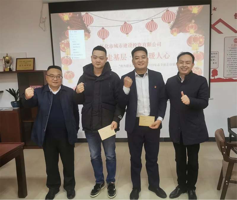 1月29日下午,市城建投黨委副書記、總經(jīng)理江中帶隊前往項目一線,公司職工之家等地開展春節(jié)慰問活動,傾聽大家的心聲期盼,為廣大一線工作者、困難職工、困難黨員、退役軍人及其他優(yōu)撫對象和項目一線困難群眾等送上節(jié)日的問候與誠摯的祝福。黨委委員、監(jiān)事會主席、工會主席劉運祥主持慰問座談會。黨委委員、紀(jì)委書記、監(jiān)察專員劉文,黨委委員、副總經(jīng)理瞿吉澤等參加活動。
