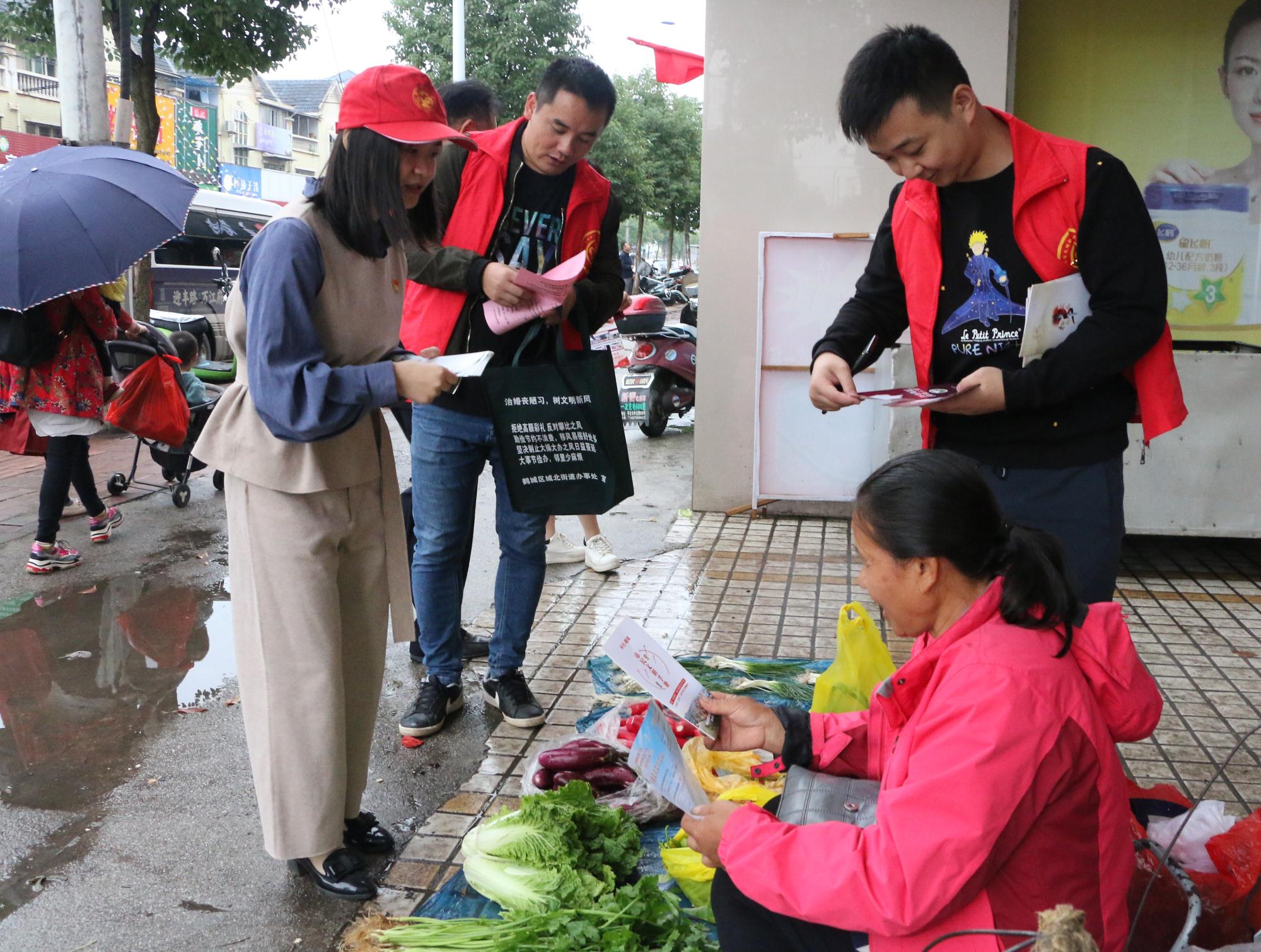 上午九點(diǎn),雖漫天細(xì)雨,志愿者的熱情卻不減。活動(dòng)負(fù)責(zé)人跟大家交代好注意事項(xiàng)后,志愿者們分隊(duì)前往社區(qū)挨家挨戶發(fā)放綜治民意調(diào)查、“三城同創(chuàng)”、掃黑除惡、禁毒等各類宣傳手冊(cè),耐心給群眾講解宣傳冊(cè)內(nèi)容,讓市民了解并積極參與幸福社區(qū)的創(chuàng)建工作。
