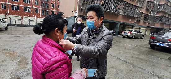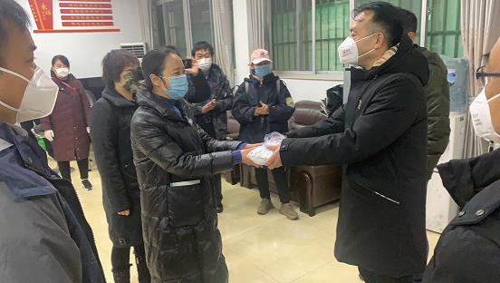 送口罩等物資給社區(qū)工作人員