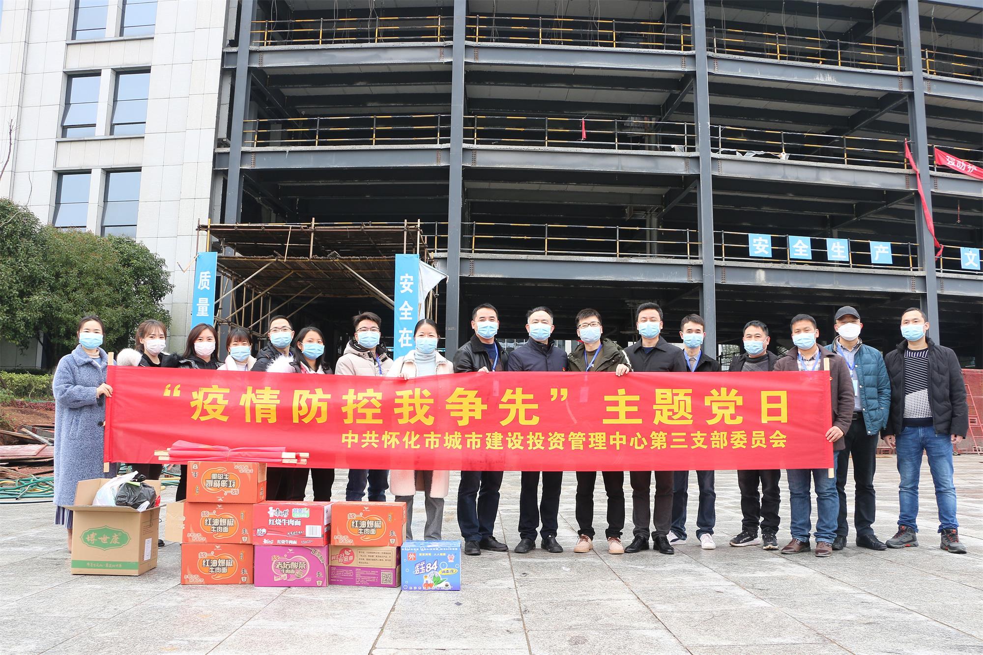 3月4日,市城建投公司第三支部率先組織黨員開展主題黨日活動,前往市民服務(wù)中心D棟、市民服務(wù)中心電梯、反腐倡廉基地、高炮團(tuán)提升泵站等四個聯(lián)系項目施工現(xiàn)場,了解項目復(fù)工存在的困難,手續(xù)辦理和工程進(jìn)展等情況,幫助做好相關(guān)政策解讀,助推項目全面復(fù)工,并贈送口罩890個、84消毒液四件、洗手液40瓶、2號包中藥267包、泡面360桶等防控物資和8幅疫情防控宣傳標(biāo)語。