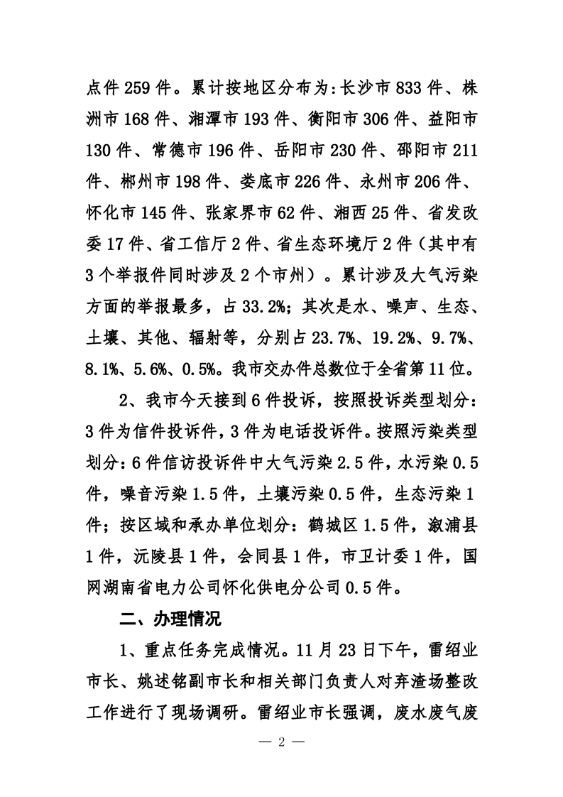 第二十五期 懷化市配合中央生態(tài)環(huán)境督察回頭看工作專報(bào)