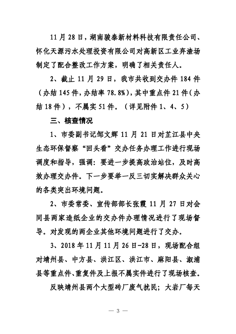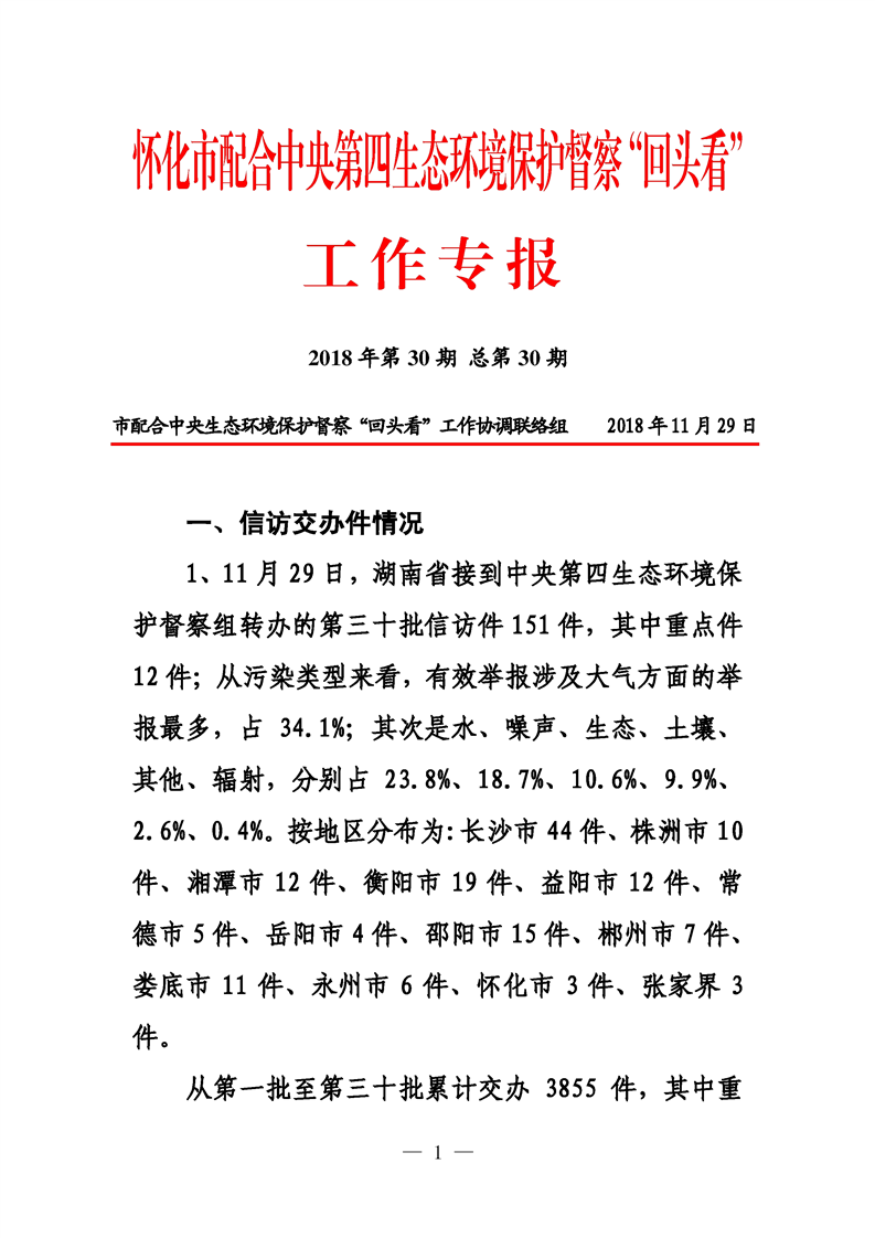 第三十期 懷化市配合中央生態(tài)環(huán)境督察回頭看工作專報