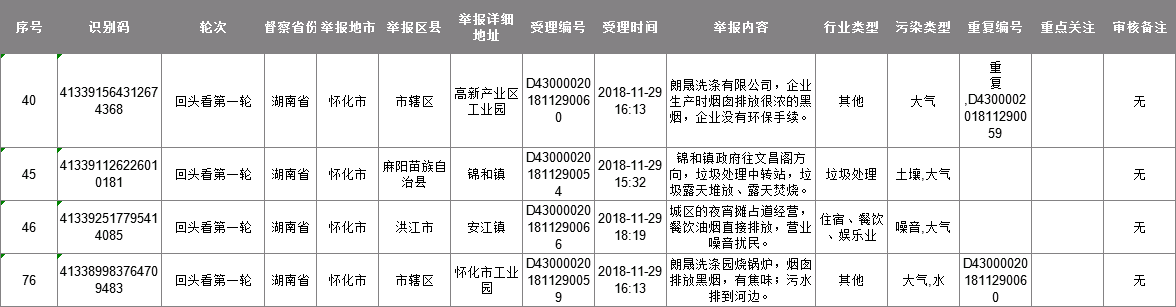 中央生態(tài)環(huán)保督察“回頭看”轉(zhuǎn)辦信訪件(11.30)
