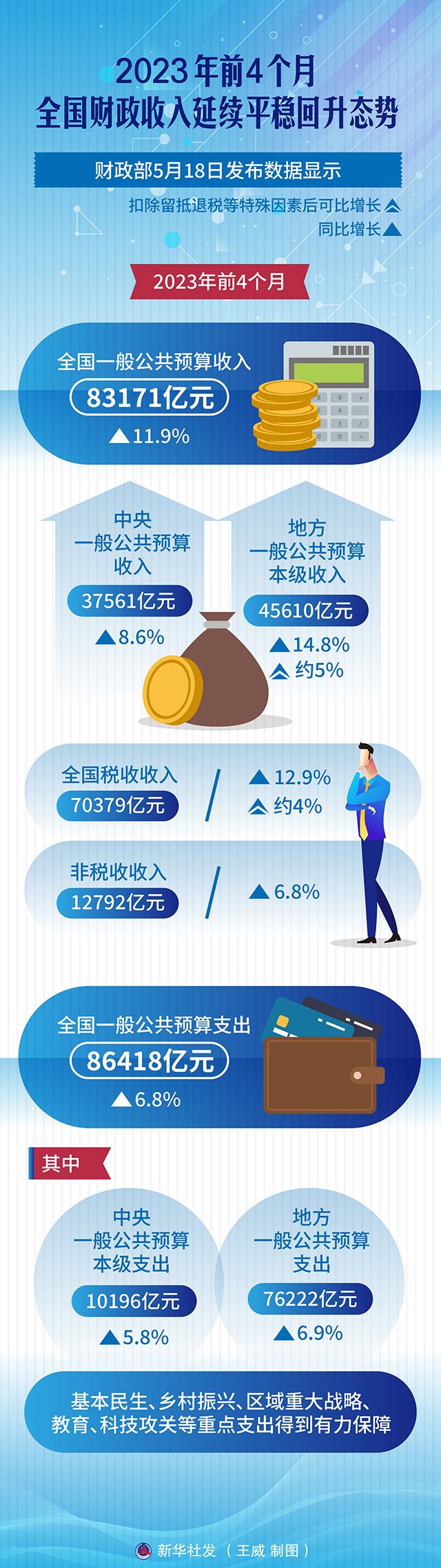 圖表:2023年前4個月全國財政收入延續(xù)平穩(wěn)回升態(tài)勢
