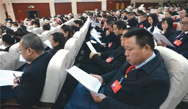 代表們認(rèn)真聆聽(tīng)大會(huì)報(bào)告