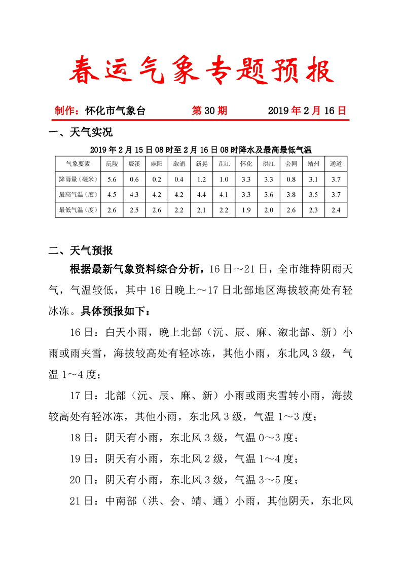 春運氣象專題預報(第30期)