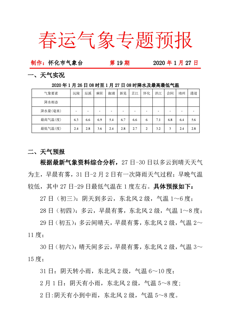 春運氣象專題預報 第19期