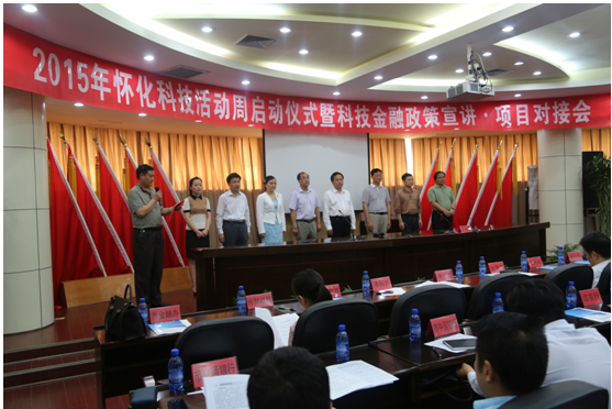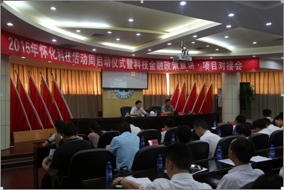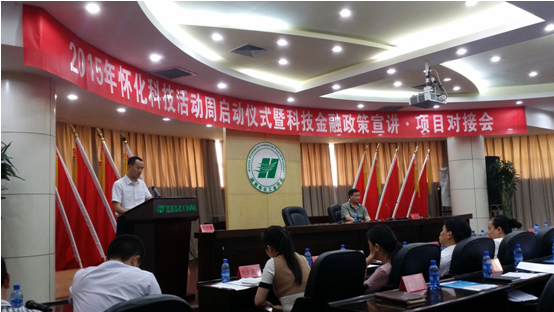 5月19日,2015年懷化科技活動(dòng)周啟動(dòng)式暨科技金融政策宣講·項(xiàng)目對(duì)接會(huì)在懷化工業(yè)園區(qū)舉行。來(lái)自懷化市直相關(guān)部門、各商業(yè)銀行、有關(guān)金融機(jī)構(gòu)、50多家科技型企業(yè),以及各縣市區(qū)科技局、經(jīng)信局和工業(yè)集中區(qū)管委會(huì)代表等150余人參加活動(dòng)。懷化市人民政府副市長(zhǎng)楊開(kāi)鳳宣布活動(dòng)正式啟動(dòng)。