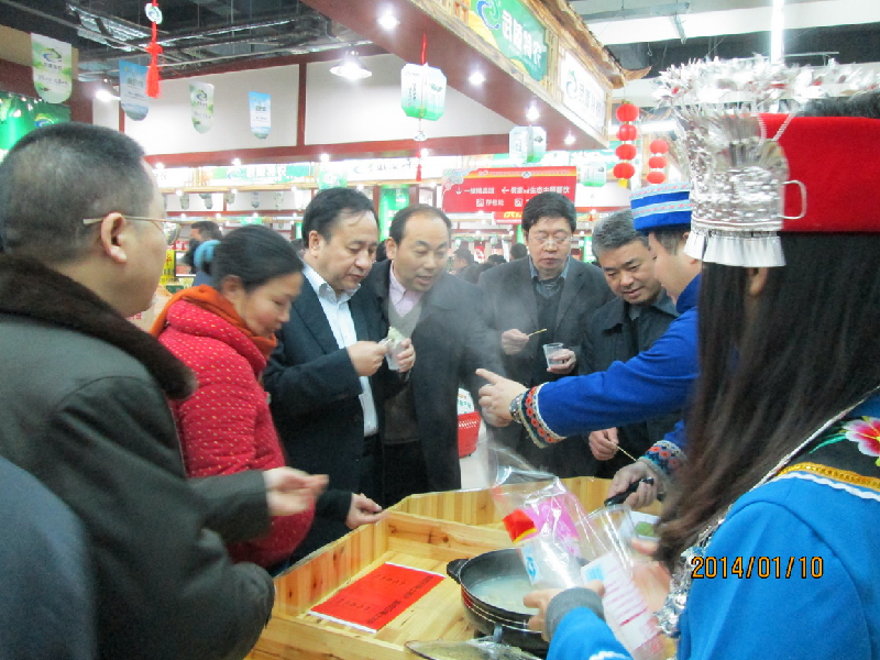 “生態(tài)武陵,吉祥懷化”湖南武陵山(懷化)首屆名優(yōu)特農(nóng)產(chǎn)品新年展銷會于10日在武陵山特色農(nóng)產(chǎn)品電子交易中心盛大開幕。湖南省內(nèi)300余家農(nóng)特企業(yè)參展,商品涵蓋武陵山片區(qū)的5000余款主要特色商品,以綠色、安全、生態(tài)為主題,種類包括糧油制品、畜禽制品、茶酒飲料、土特產(chǎn)品、休閑食品、調(diào)味品及其它便民消費品。
