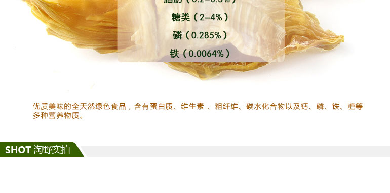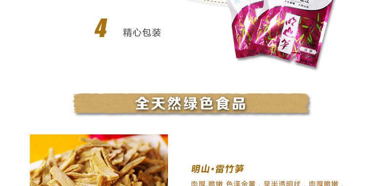 品牌: 明山筍 包裝方式: 袋裝 保質(zhì)期: 一年 凈重: 238g 生產(chǎn)許可證: QS4312 1601 0412,QS4312 1601 0412 產(chǎn)品標(biāo)準(zhǔn)號(hào): SB/T 10439-2007,SB/T 10439-2007 配料表: 雷竹鮮筍、食用精鹽,雷竹鮮筍、食用精鹽 儲(chǔ)藏方法: 冷藏或置于陰涼干燥處,冷藏或置于陰涼干燥處 食品添加劑: 無 產(chǎn)地: 湖南省 懷化市 芷江侗族自治縣 |
