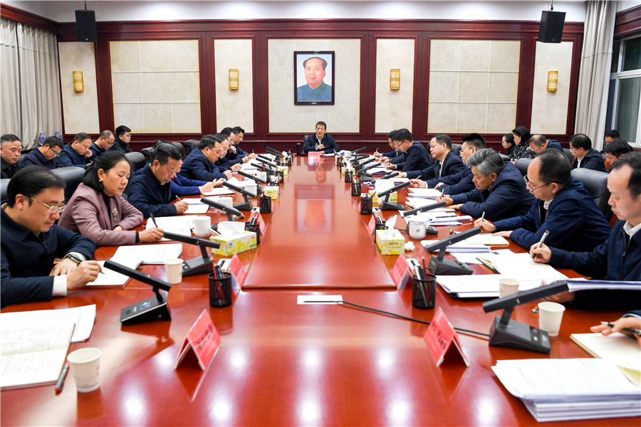 (2月6日下午,市委書記許忠建主持召開全市產(chǎn)業(yè)體系建設(shè)和招商引資重點簽約項目進(jìn)展調(diào)度會。懷化日報全媒體記者 楊智偉 攝)