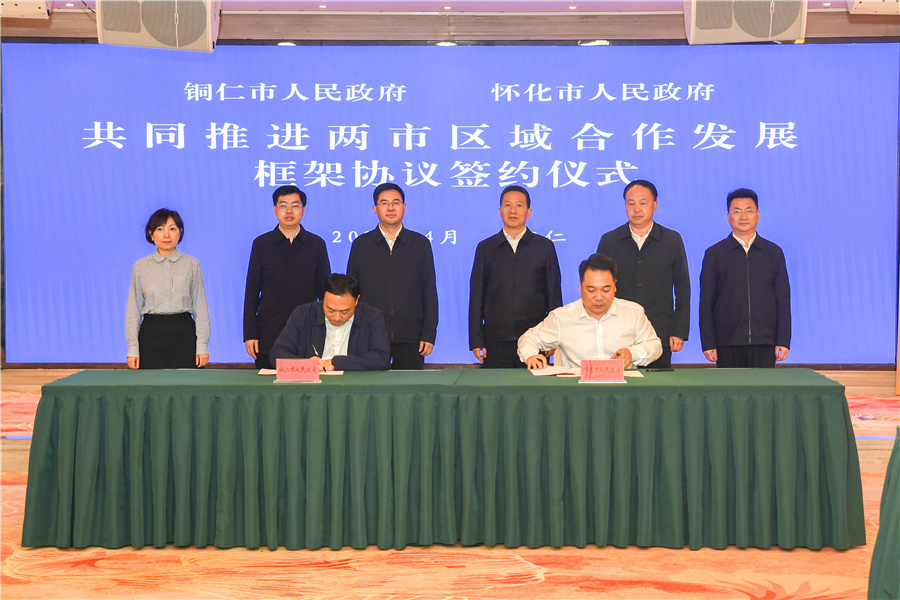 (銅仁市政府與懷化市政府簽訂共同推進兩市區(qū)域合作發(fā)展框架協(xié)議。)