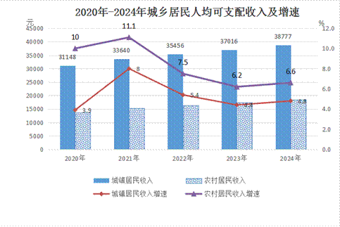 抽樣調(diào)查顯示,全縣城鄉(xiāng)居民人均可支配收入為25220元,同比增長6.2%。其中,城鎮(zhèn)居民人均可支配收入38777元,同比增長4.8%;農(nóng)村居民人均可支配收入18528元,同比增長6.6%。全縣城鄉(xiāng)居民人均消費支出為17414元,同比增長5.4%。其中,城鎮(zhèn)居民人均消費支出23275元,同比增長4.5%;農(nóng)村居民人均消費支出14521元,同比增長5.4%。