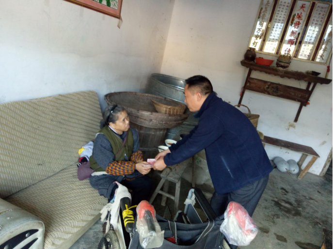 10月28日新晃縣民政局走訪晃州新村胡家組貧困殘疾人。