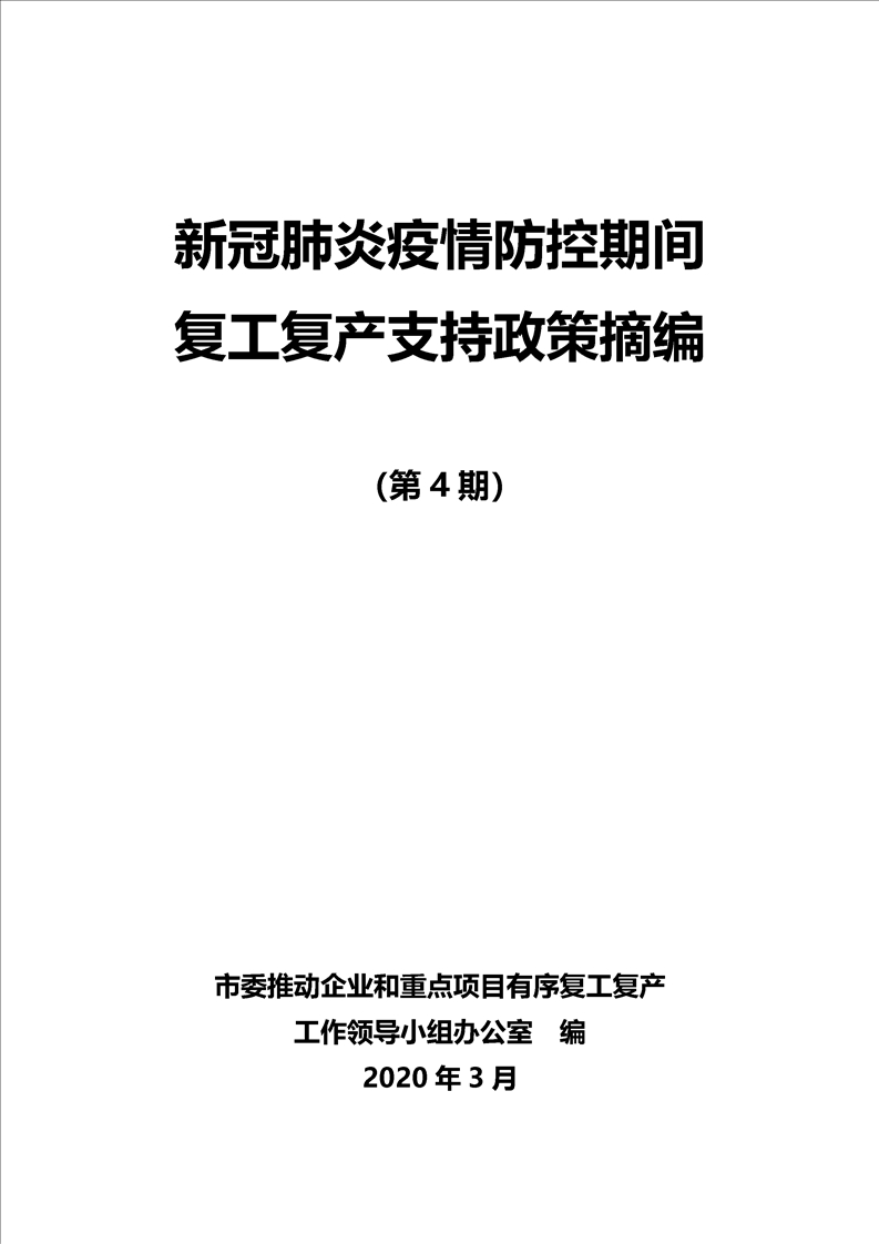 新冠肺炎疫情防控期間復(fù)工復(fù)產(chǎn)支持政策摘編(第4期)