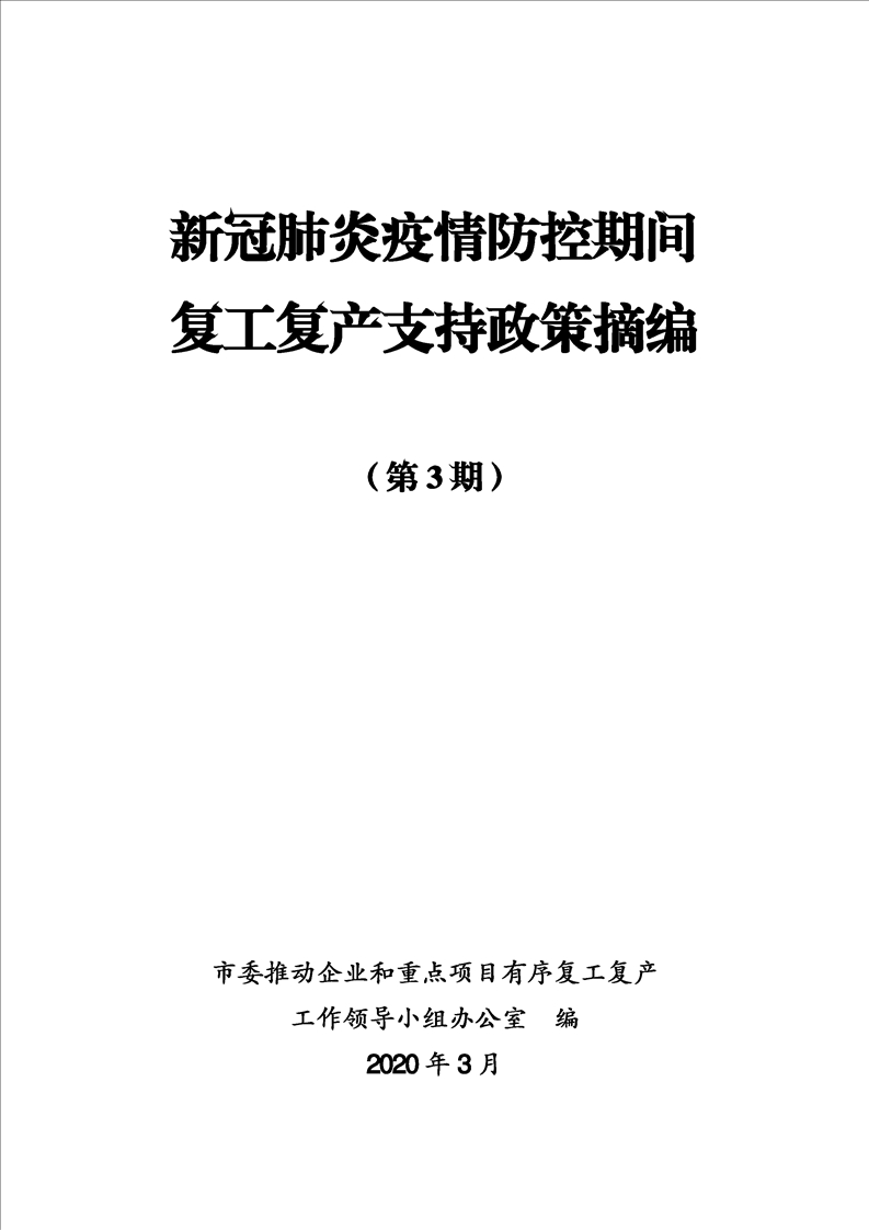 新冠肺炎疫情防控期間復(fù)工復(fù)產(chǎn)支持政策摘編(第3期)