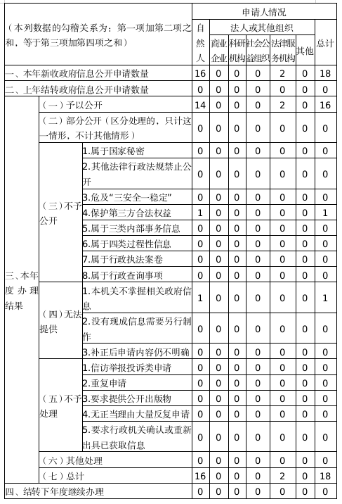 三、收到和處理政府信息公開申請情況
