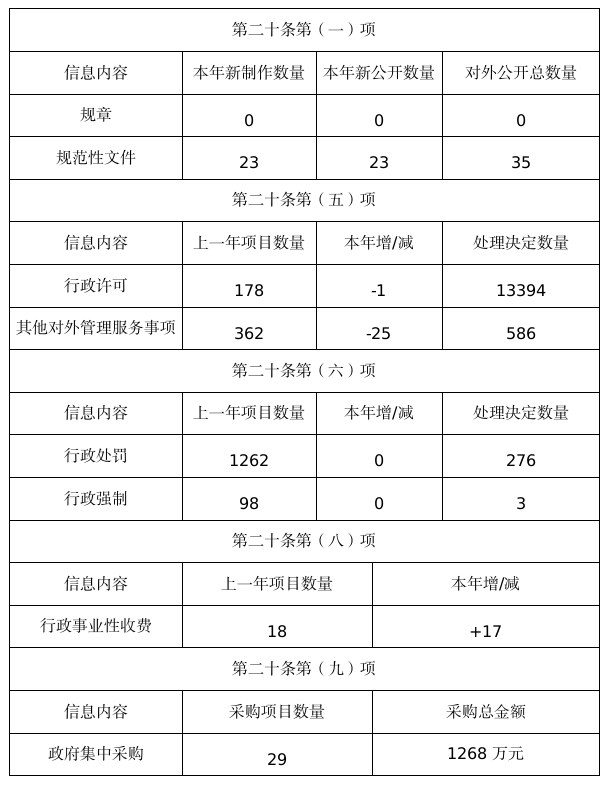 本年度報告根據(jù)《中華人民共和國政府信息公開條例》(以下簡稱《條例》)、湖南省政務(wù)公開領(lǐng)導(dǎo)小組辦公室《關(guān)于貫徹落實(中華人民共和國政府信息公開條例)實施方案》(以下簡稱《實施方案》)及《懷化市政府信息公開實施細則》(以下簡稱《細則》)的有關(guān)規(guī)定,由鶴城區(qū)政務(wù)公開領(lǐng)導(dǎo)小組辦公室編制。全文由總體情況、主動公開政府信息情況、收到和處理政府信息公開申請情況、政府信息公開行政復(fù)議行政訴訟情況、存在的主要問題及改進措施等五部分組成。本報告的統(tǒng)計數(shù)據(jù)時限為2020年1月1日至12月31日,通過懷化市鶴城區(qū)人民政府門戶網(wǎng)站對外公布。如對報告有任何疑問、意見,請與懷化市鶴城區(qū)政務(wù)公開領(lǐng)導(dǎo)小組辦公室聯(lián)系(地址:懷化市鶴城區(qū)政府智慧政務(wù)樓四樓,郵編:418000,電話:0745-2338221,電子郵箱:hcqzwzx@126.com)。