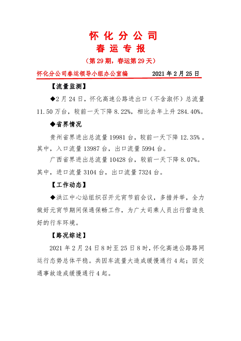 省高速集團(tuán)懷化分公司第29期春運(yùn)專(zhuān)報(bào)