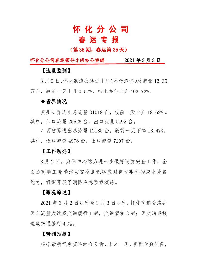 省高速集團懷化分公司第35期春運專報