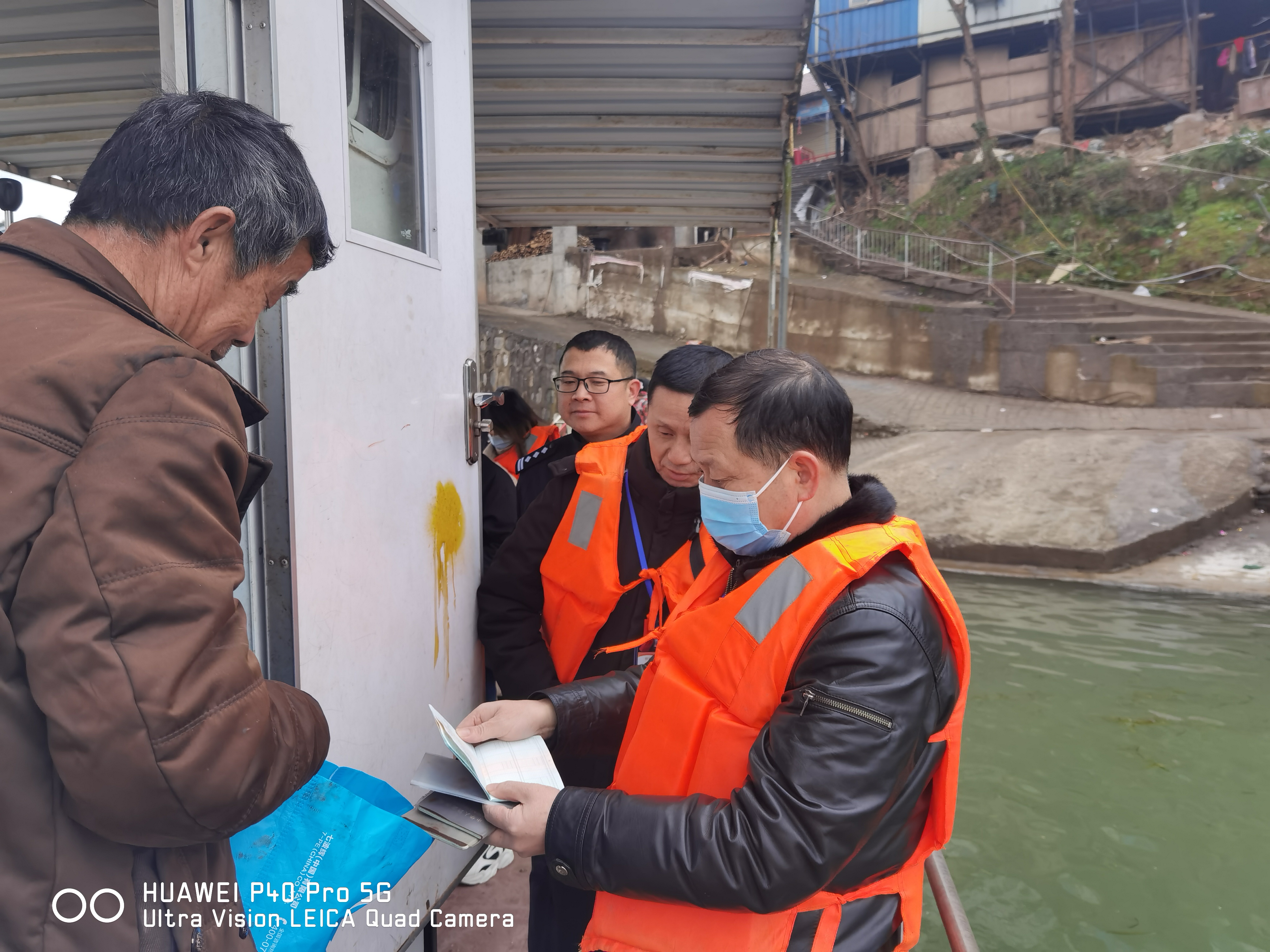 圖2 檢查組在麻陽碼頭查看船員證件