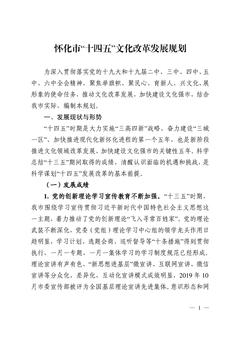懷化市“十四五”文化改革發(fā)展規(guī)劃