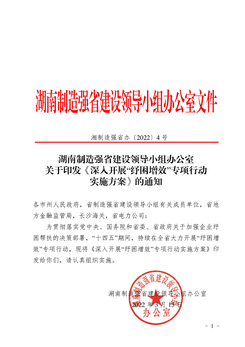 湖南制造強(qiáng)省建設(shè)領(lǐng)導(dǎo)小組辦公室關(guān)于印發(fā)《深入開展“紓困增效”專項行動實施方案》的通知