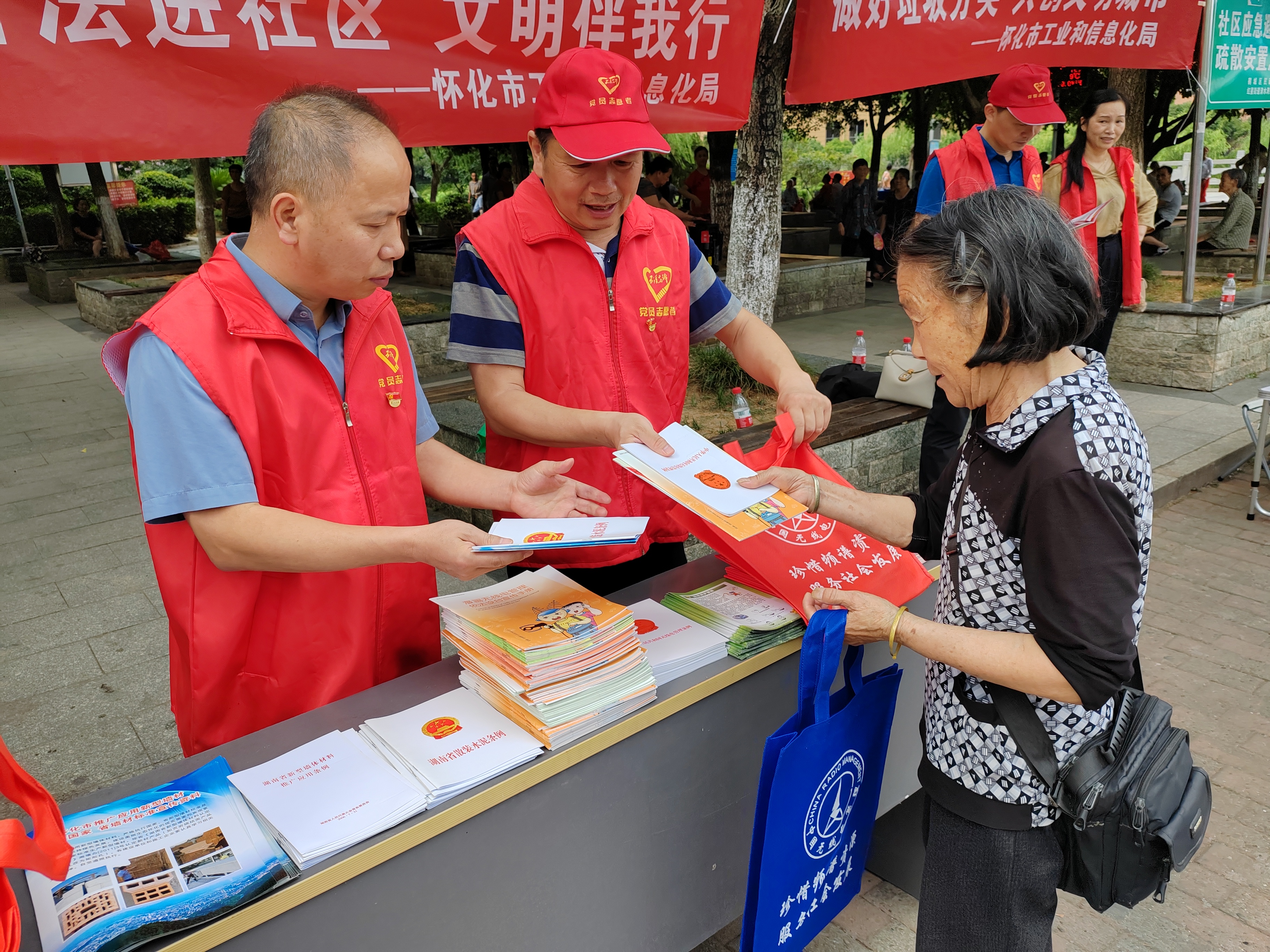 七月十四日,懷化市工業(yè)和信息化局干部職工志愿者冒著酷暑炎熱,走進對口幫扶的清水灣社區(qū),開展政務公開一系列“普法進社區(qū),文明伴我行”主題宣傳活動,為居民群眾帶來憲法、民法和居民生活相關的電力法規(guī)、安全生產(chǎn)法規(guī)等知識宣傳冊。