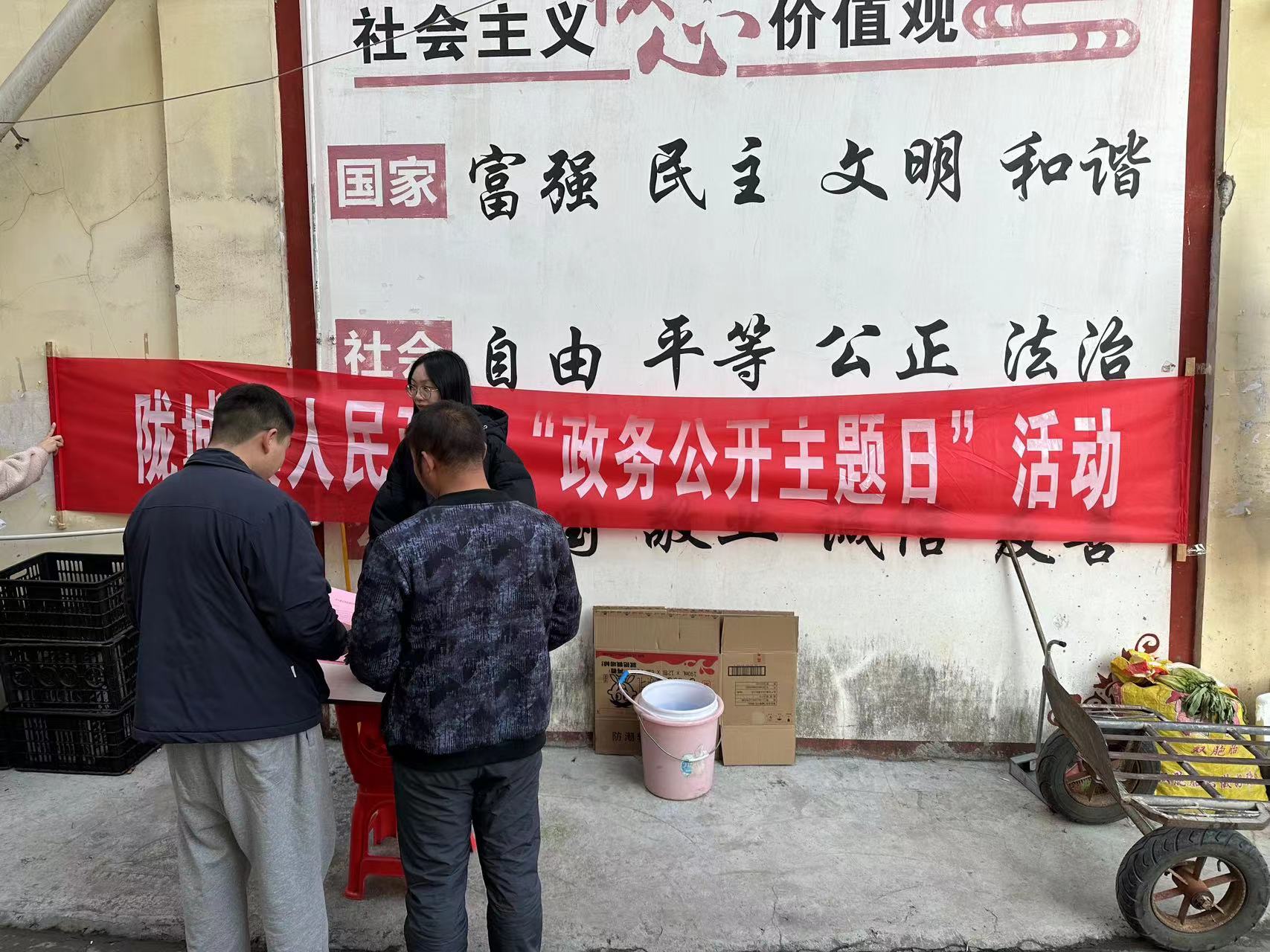 為進(jìn)一步落實民生實事,搭建聯(lián)系群眾的有益橋梁,推動服務(wù)型政府建設(shè),12月27日上午,通道縣隴城鎮(zhèn)政務(wù)服務(wù)中心組織相關(guān)人員,在集鎮(zhèn)開展“政務(wù)公開主題日”活動。