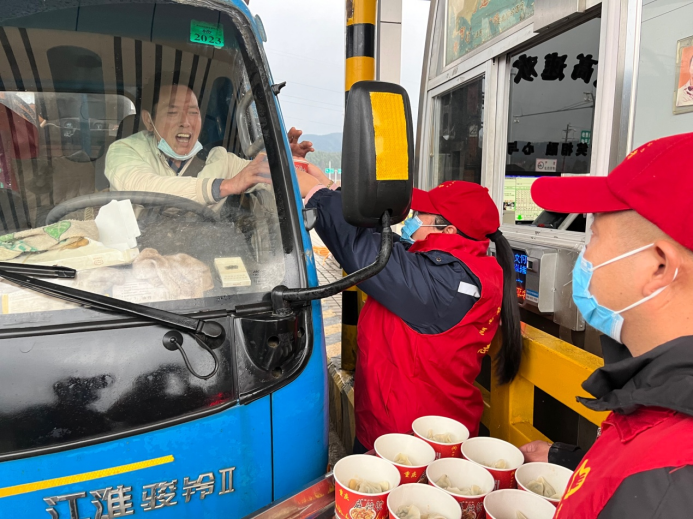 小年一大早,靖州收費站廚房里就忙碌起來,洗菜、切菜、剁肉餡、和面、包餃子,大家忙得不亦樂乎??斓街形鐣r,一盤盤熱氣騰騰的餃子出鍋后,第一時間被送到收費現(xiàn)場。“師傅,今天是小年夜,吃完水餃暖暖胃。”“路燈”志愿者將一碗碗水餃送給司乘的同時,也送去了一份新年祝福。“這是我今年吃過最好吃的餃子,吃在嘴里、暖在心里,是家鄉(xiāng)的味道……”一位從深圳回家過年的司機朋友豎起大拇指連連稱贊。