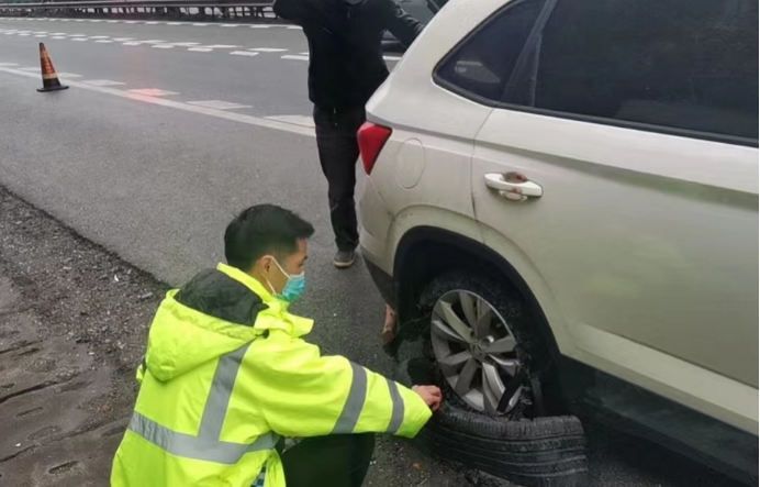 上午9時許,在G60滬昆高速公路東向西方向K1378+650M處,一輛小車因右后輪爆胎停在應(yīng)急車道上。而司機沒有換胎經(jīng)驗,只能在原地干著急。所幸雪峰山管理所巡查人員在巡查過程中及時發(fā)現(xiàn),并用隨車維修工具迅速幫其換好輪胎。