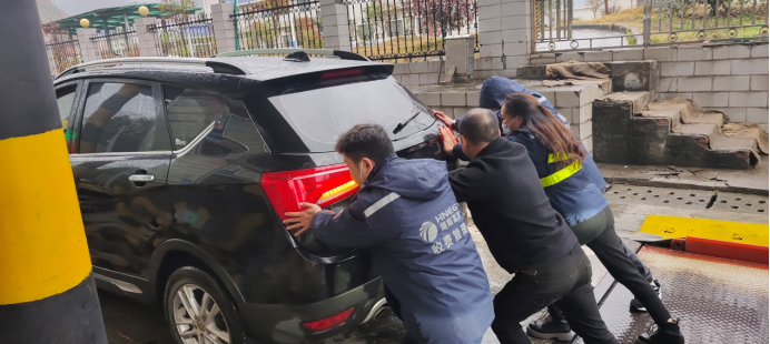 中午時分,在興隆收費站,一輛黑色小車正常繳費后突發(fā)故障,多次打火后仍無法啟動。收費站工作人員幫助司機將車推至安全區(qū)域,并幫司機聯(lián)系了附近的汽修廠。對收費站工作人員的熱心幫助,司機連連表示感謝。