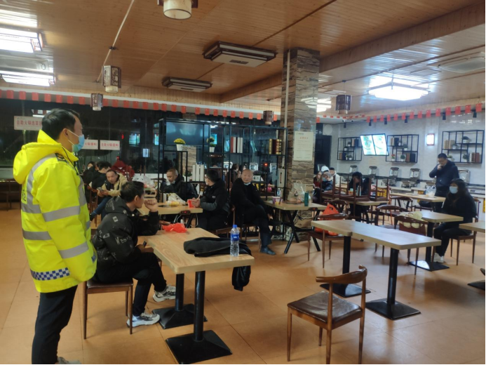 見此情況,巡查人員立即設置好警示區(qū)域,將乘客引導至安全區(qū)域,并聯(lián)系車輛救援單位和轉運車輛。此時的氣溫已經接近0℃,伴著深夜的寒風,凍得人直哆嗦。車輛由于故障無法開啟空調,乘客嘴里呼呼地哈著白汽。巡查人員立即將三位老人帶到巡邏車上取暖,同時安撫乘客情緒:“大家別著急,天這么冷,我們先帶大家到芷江服務區(qū)避寒、休息”。