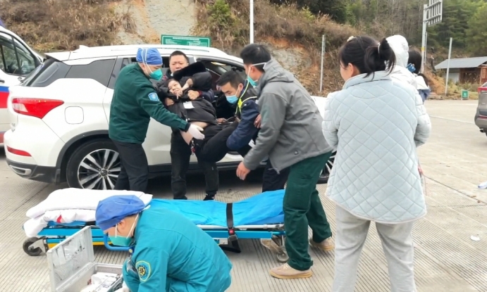 大年初一上午,一輛粵B越野車通過(guò)萬(wàn)佛山收費(fèi)站時(shí),駕駛員向收費(fèi)站工作人員尋求幫助。原來(lái),車上一位老人突發(fā)疾病,面色蒼白,表情痛苦,無(wú)法正常交流。收費(fèi)班長(zhǎng)了解情況后,立馬撥打120,同時(shí)將車輛引導(dǎo)到安全區(qū)域。十幾分鐘后,醫(yī)護(hù)人員趕到現(xiàn)場(chǎng),收費(fèi)班長(zhǎng)協(xié)助醫(yī)護(hù)人員將暈厥老人抬上救護(hù)車送往醫(yī)院接受治療。