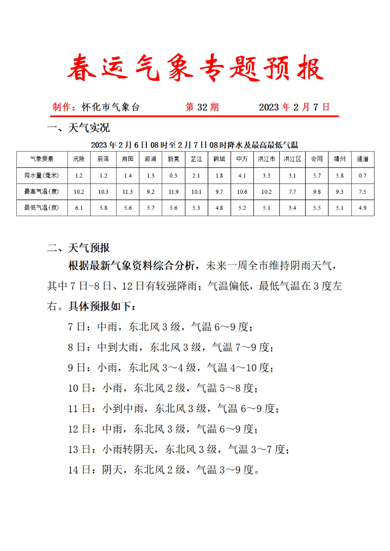 春運(yùn)氣象專題預(yù)報 第32期