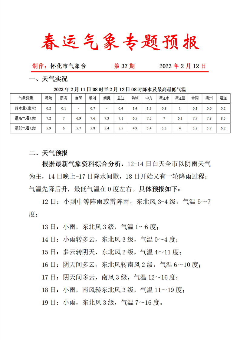 春運(yùn)氣象專題預(yù)報(bào) 第37期