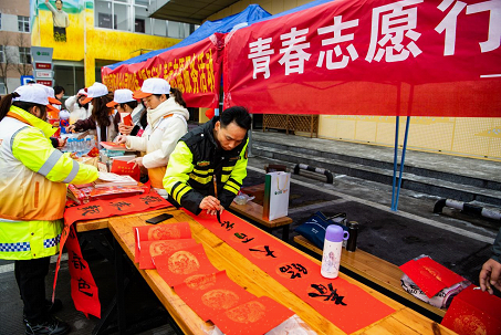 圖6“路燈”志愿者在寫春聯(lián)(田文國(guó) 圖)