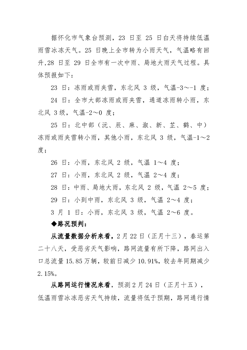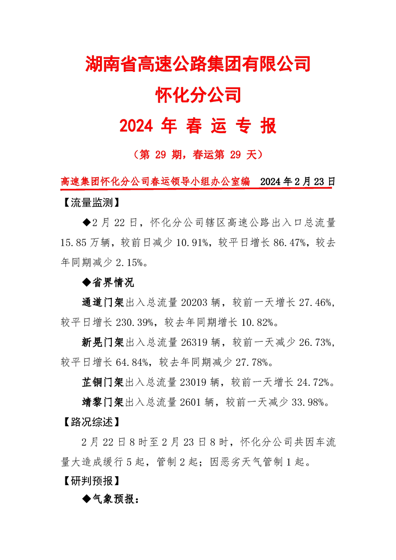 2024年懷化分公司春運專報-第29期