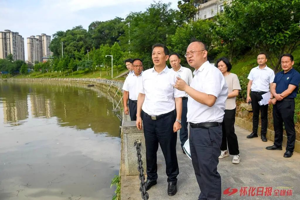 5月27日下午,市委書(shū)記許忠建督導(dǎo)檢查中央生態(tài)環(huán)境保護(hù)督察典型案例整改工作。圖為許忠建在太平溪84號(hào)排污口實(shí)地查看管網(wǎng)改造、污水收集處理和排放情況。(懷化日?qǐng)?bào)全媒體記者 楊智偉 攝)