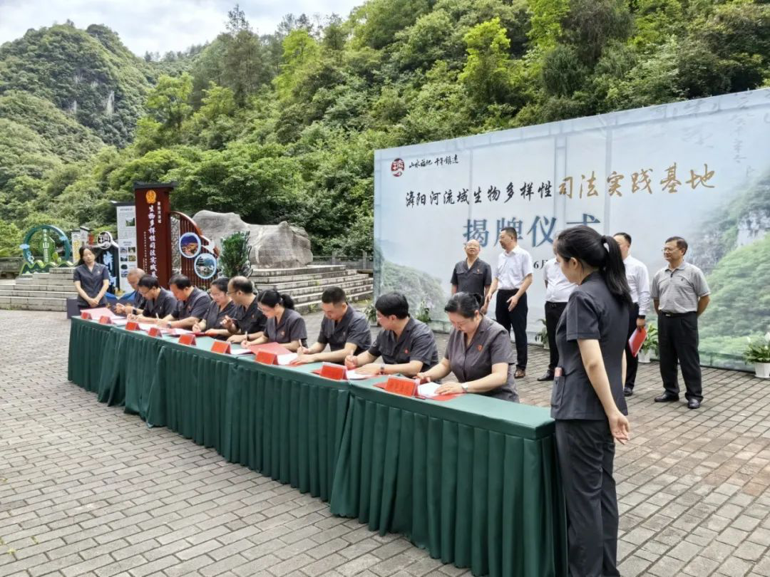 6月5日是世界環(huán)境日,新晃縣人民法院黨組書記、院長楊琳慧帶隊與貴州省鎮(zhèn)遠縣、甕安縣、黃平縣、施秉縣、岑鞏縣、玉屏侗族自治縣、銅仁市碧江區(qū)人民法院在貴州省鎮(zhèn)遠縣下?陽河景區(qū)游客服務(wù)中心廣場開展“?陽(水)河流域生物多樣性司法實踐基地”揭牌活動,并共同簽署了《?陽(水)河全流域環(huán)境資源跨省州縣司法保護協(xié)作機制》。