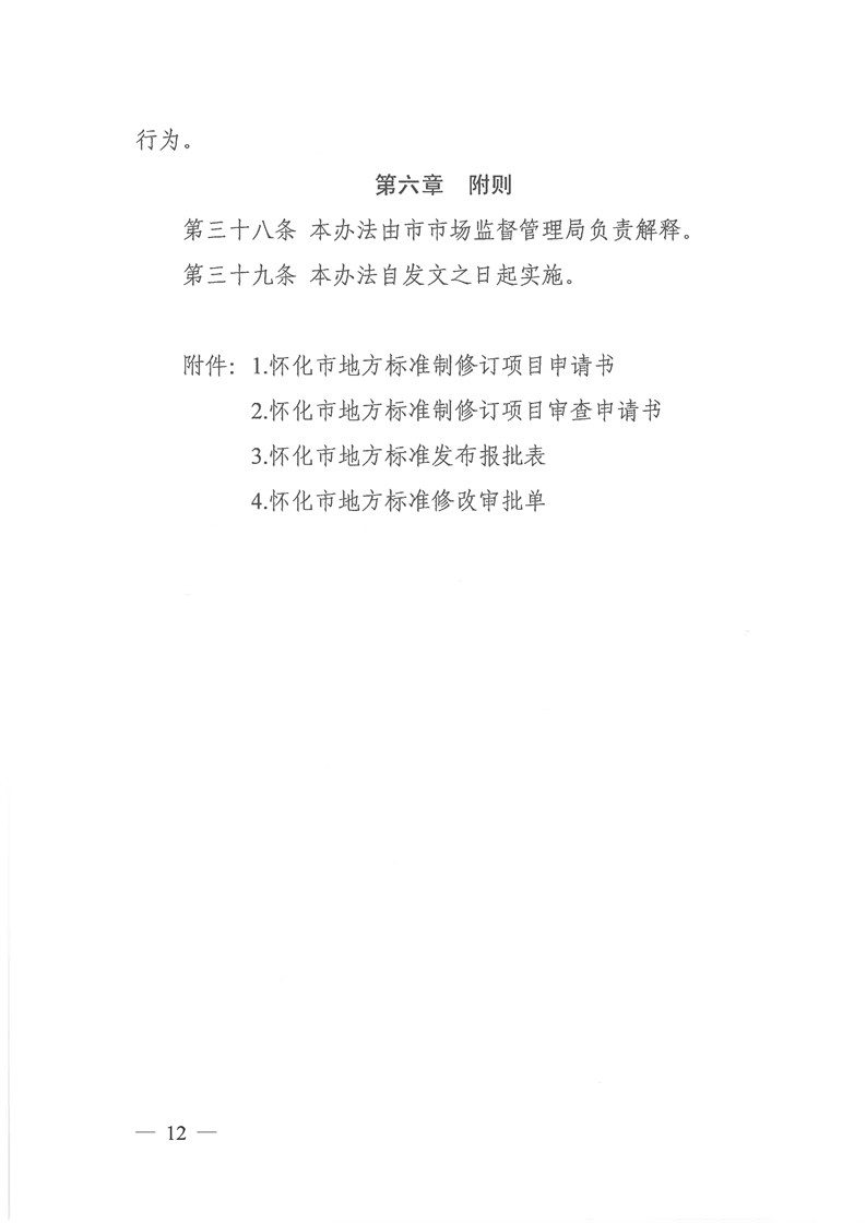 關(guān)于印發(fā)《懷化市地方標準管理辦法》的通知