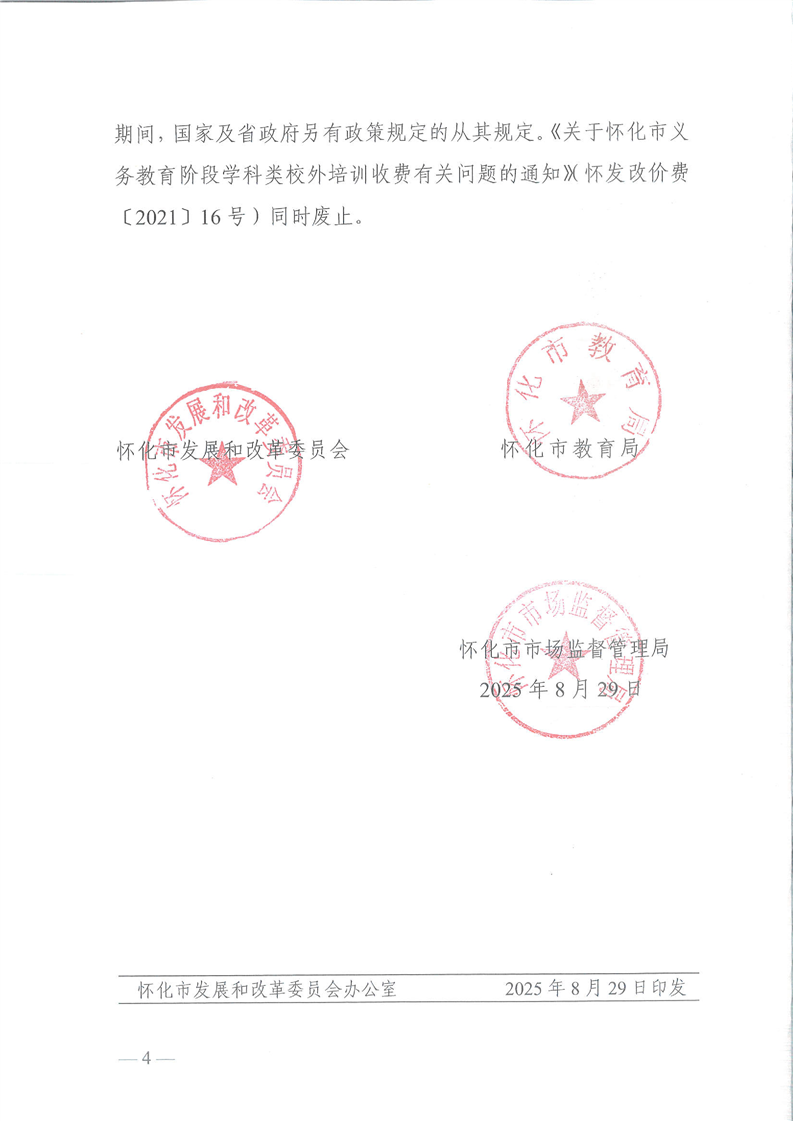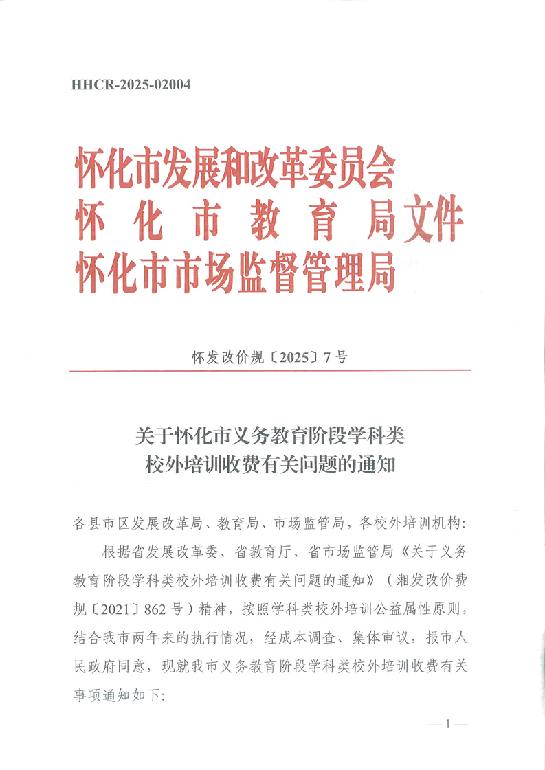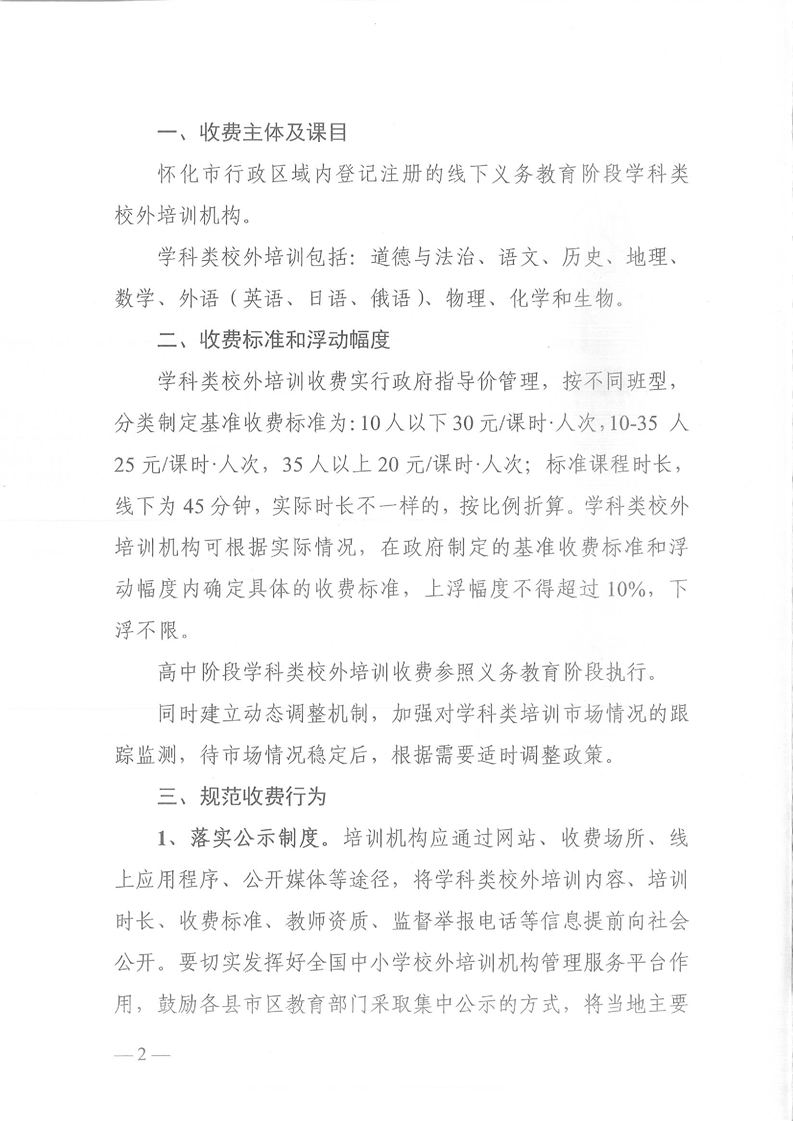 關(guān)于懷化市義務(wù)教育階段學(xué)科類校外培訓(xùn)收費有關(guān)問題的通知