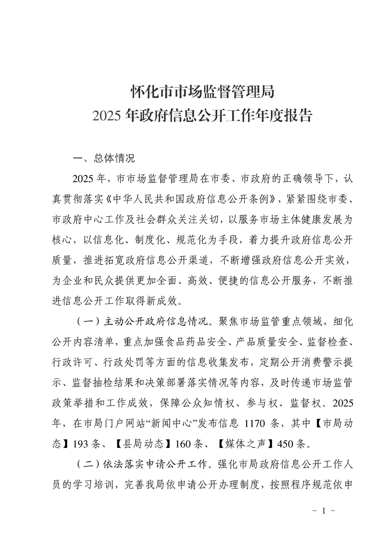 懷化市市場(chǎng)監(jiān)督管理局2025年政府信息公開工作年度報(bào)告